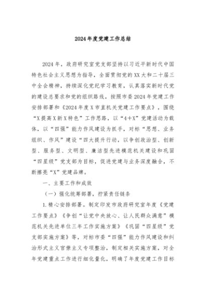 / 【七哥公文】2024年:2024年度党建工作总结+更多免费公文+VX:QiGeGongWen2024
