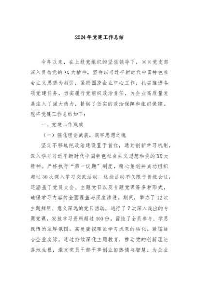 / 【七哥公文】2024年:2024年党建工作总结+更多免费公文+VX:QiGeGongWen2024
