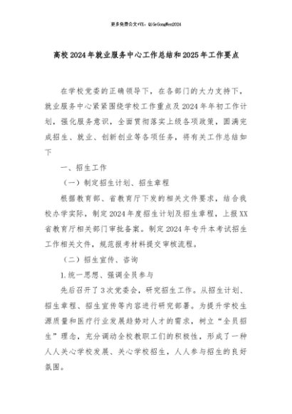 【七哥公文】2024年:高校2024年就业服务中心工作总结和2025年工作要点+更多免费公文+VX:QiGeGongWen2024