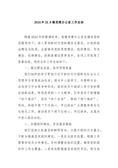 / 【七哥公文】2024年:2024年XX乡镇党建办公室工作总结+更多免费公文+VX:QiGeGongWen2024