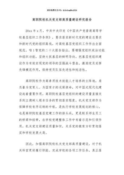 / 【七哥公文】2024年:高职院校机关党支部高质量建设研究报告+更多免费公文+VX:QiGeGongWen2024