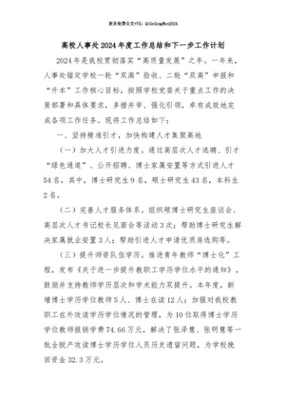 / 【七哥公文】2024年:高校人事处2024年度工作总结和下一步工作计划+更多免费公文+VX:QiGeGongWen2024