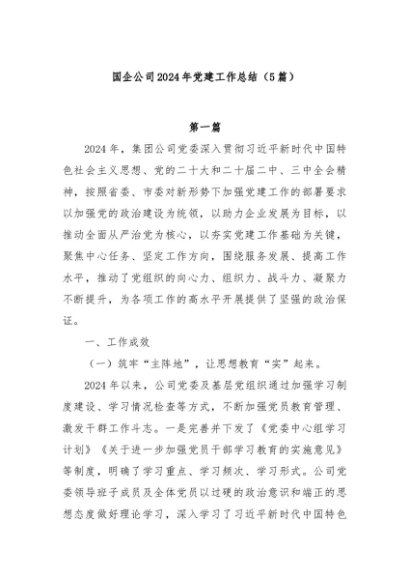 / 【七哥公文】2024年:(5篇)国企公司2024年党建工作总结+更多免费公文+VX:QiGeGongWen2024