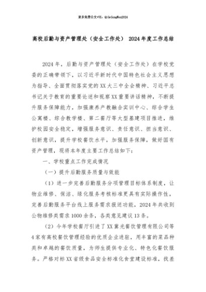 【七哥公文】2024年:高校后勤与资产管理处(安全工作处) 2024年度工作总结+更多免费公文+VX:QiGeGongWen2024