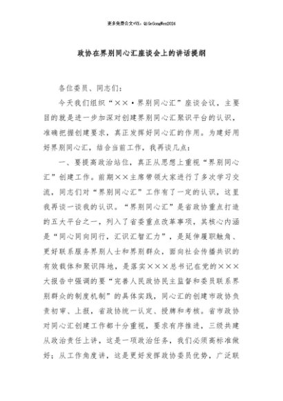 / 【七哥公文】2024年:政协在界别同心汇座谈会上的讲话提纲+更多免费公文+VX:QiGeGongWen2024