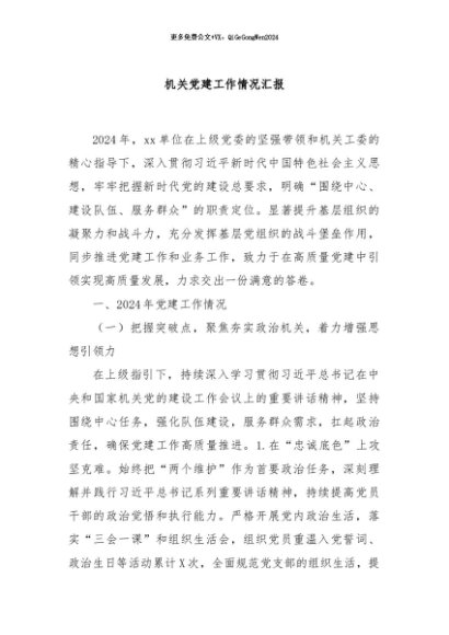 / 【七哥公文】2024年:机关党建工作情况汇报+更多免费公文+VX:QiGeGongWen2024