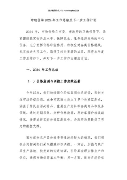 / 【七哥公文】2024年:市物价局2024年工作总结及下一步工作计划+更多免费公文+VX:QiGeGongWen2024