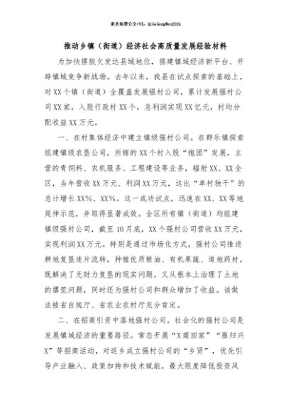 / 【七哥公文】2024年:推动乡镇(街道)经济社会高质量发展经验材料+更多免费公文+VX:QiGeGongWen2024