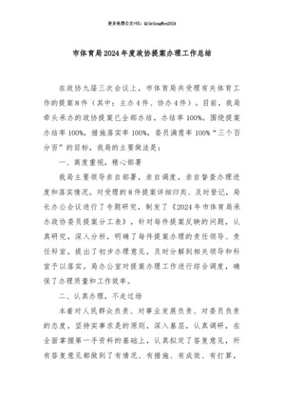 / 【七哥公文】2024年:市体育局2024年度政协提案办理工作总结+更多免费公文+VX:QiGeGongWen2024