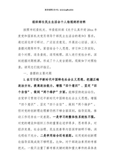 / 【七哥公文】2024年:组织部长民主生活会个人检视剖析材料+更多免费公文+VX:QiGeGongWen2024
