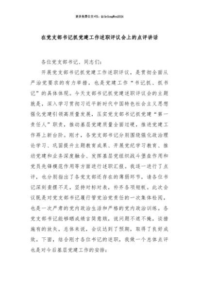 / 【七哥公文】2024年:在党支部书记抓党建工作述职评议会上的点评讲话+更多免费公文+VX:QiGeGongWen2024
