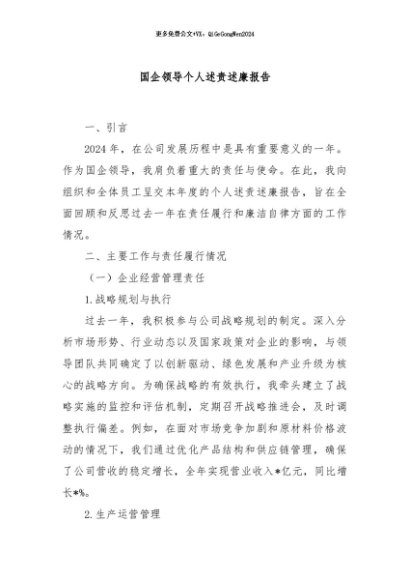 / 【七哥公文】2024年:国企领导个人述责述廉报告+更多免费公文+VX:QiGeGongWen2024