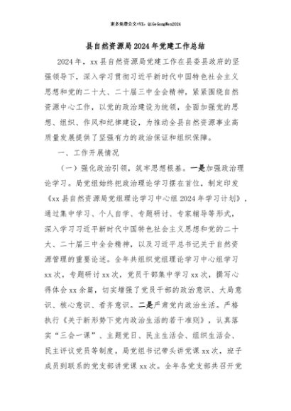 / 【七哥公文】2024年:县自然资源局2024年党建工作总结+更多免费公文+VX:QiGeGongWen2024