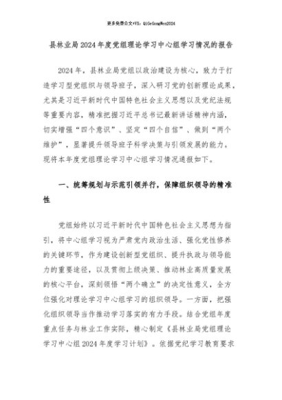 【七哥公文】2024年:县林业局2024年度党组理论学习中心组学习情况的报告+更多免费公文+VX:QiGeGongWen2024