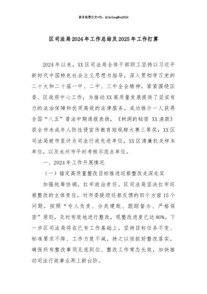 / 【七哥公文】2024年:区司法局2024年工作总结及2025年工作打算+更多免费公文+VX:QiGeGongWen2024