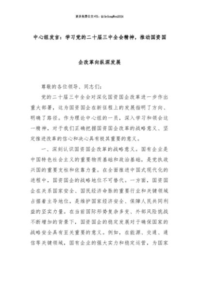 【七哥公文】2024年:中心组发言:学习党的二十届三中全会精神,推动国资国企改革向纵深发展+更多免费公文+VX:QiGeGongWen2024