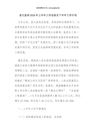 / 【七哥公文】2024年:县文旅局2024年上半年工作总结及下半年工作计划+更多免费公文+VX:QiGeGongWen2024