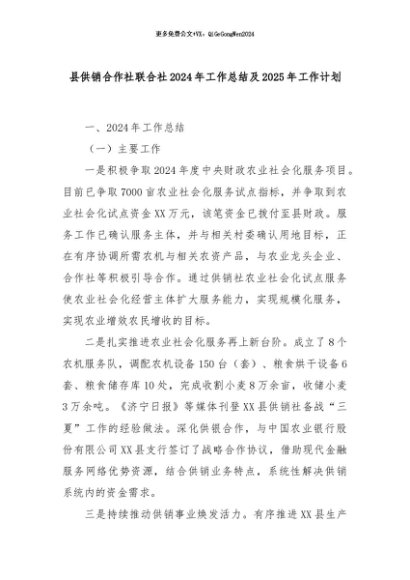 【七哥公文】2024年:县供销合作社联合社2024年工作总结及2025年工作计划+更多免费公文+VX:QiGeGongWen2024