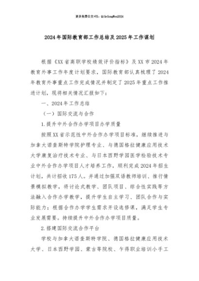 / 【七哥公文】2024年:2024年国际教育部工作总结及2025年工作谋划+更多免费公文+VX:QiGeGongWen2024