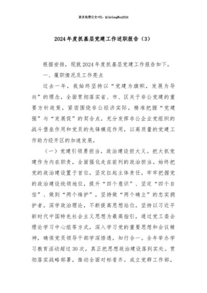 / 【七哥公文】2024年:2024年度抓基层党建工作述职报告(3)+更多免费公文+VX:QiGeGongWen2024