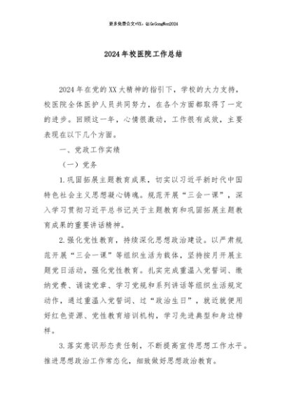 / 【七哥公文】2024年:2024年校医院工作总结+更多免费公文+VX:QiGeGongWen2024