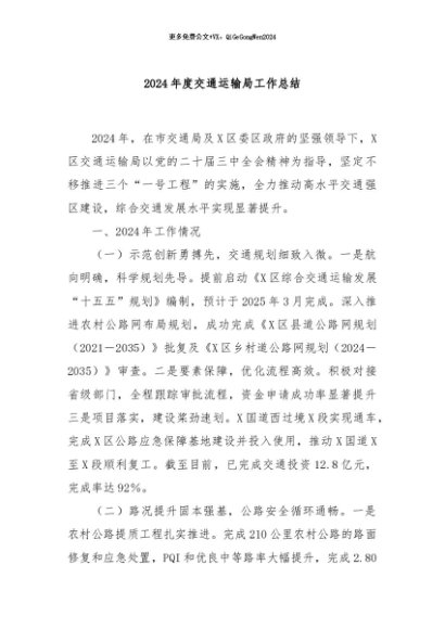 / 【七哥公文】2024年:2024年度交通运输局工作总结+更多免费公文+VX:QiGeGongWen2024