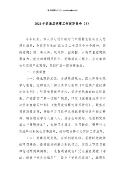 / 【七哥公文】2024年:2024年抓基层党建工作述职报告(3)+更多免费公文+VX:QiGeGongWen2024