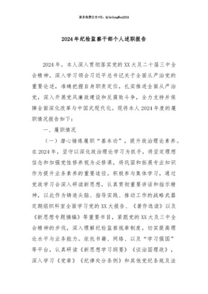 / 【七哥公文】2024年:2024年纪检监察干部个人述职报告+更多免费公文+VX:QiGeGongWen2024