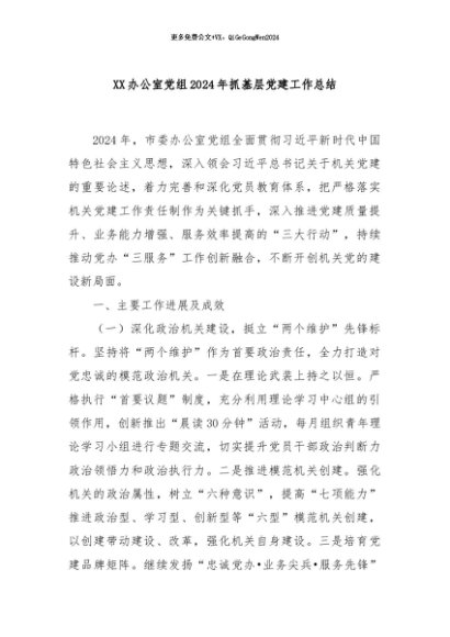 / 【七哥公文】2024年:XX办公室党组2024年抓基层党建工作总结+更多免费公文+VX:QiGeGongWen2024