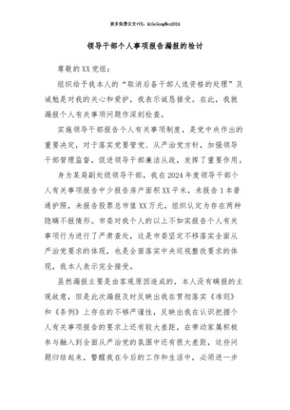 / 【七哥公文】2024年:领导干部个人事项报告漏报的检讨+更多免费公文+VX:QiGeGongWen2024