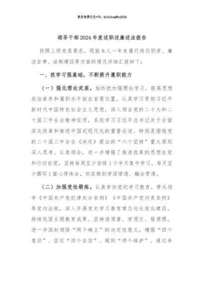 / 【七哥公文】2024年:领导干部2024年度述职述廉述法报告+更多免费公文+VX:QiGeGongWen2024
