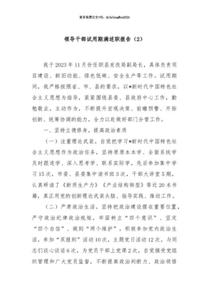 【七哥公文】2024年:领导干部试用期满述职报告(2)+更多免费公文+VX:QiGeGongWen2024