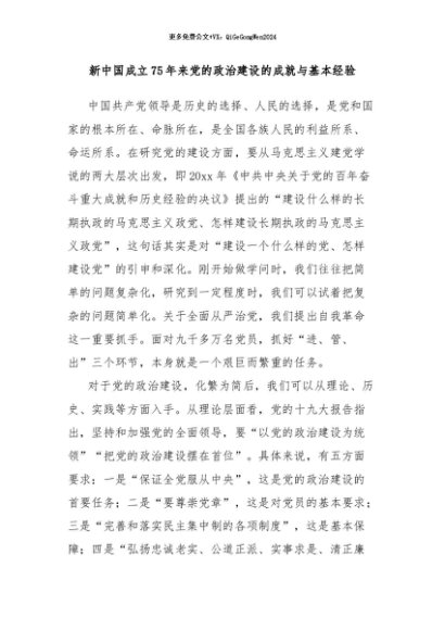 / 【七哥公文】2024年:新中国成立75年来党的政治建设的成就与基本经验+更多免费公文+VX:QiGeGongWen2024
