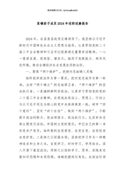 / 【七哥公文】2024年:某镇班子成员2024年述职述廉报告+更多免费公文+VX:QiGeGongWen2024