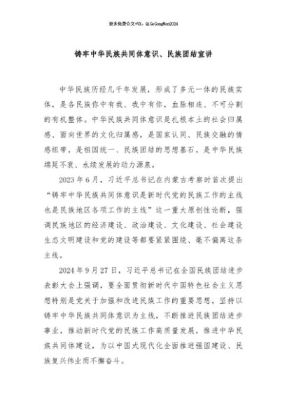 / 【七哥公文】2024年:铸牢中华民族共同体意识、民族团结宣讲+更多免费公文+VX:QiGeGongWen2024