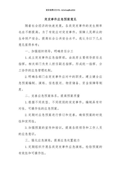 【七哥公文】2024年:突发事件应急预案意见+更多免费公文+VX:QiGeGongWen2024
