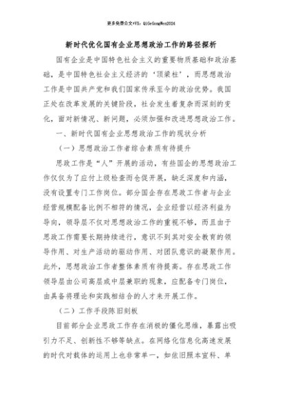/ 【七哥公文】2024年:新时代优化国有企业思想政治工作的路径探析+更多免费公文+VX:QiGeGongWen2024