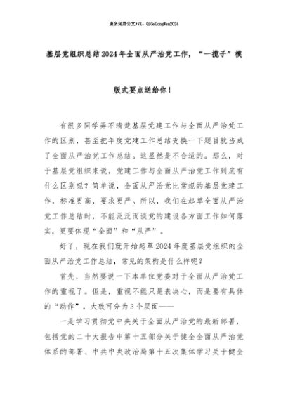 【七哥公文】2024年:基层党组织总结2024年全面从严治党工作,“一揽子”模版式要点送给你!+更多免费公文+VX:QiGeGongWen2024