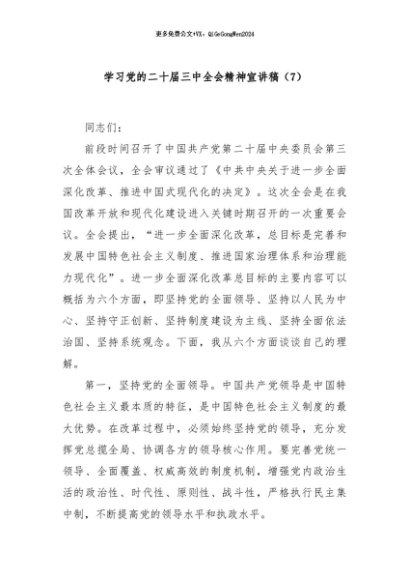 / 【七哥公文】2024年:学习党的二十届三中全会精神宣讲稿(7)+更多免费公文+VX:QiGeGongWen2024