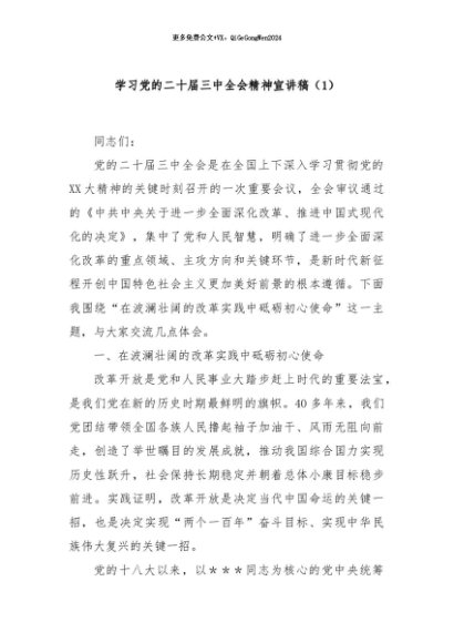/ 【七哥公文】2024年:学习党的二十届三中全会精神宣讲稿(1)+更多免费公文+VX:QiGeGongWen2024