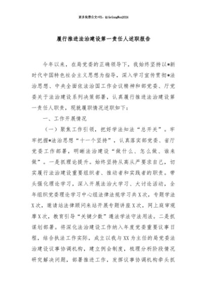 / 【七哥公文】2024年:履行推进法治建设第一责任人述职报告+更多免费公文+VX:QiGeGongWen2024