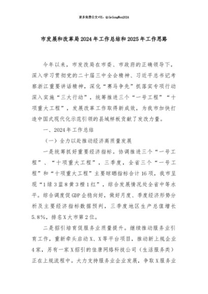【七哥公文】2024年:市发展和改革局2024年工作总结和2025年工作思路+更多免费公文+VX:QiGeGongWen2024