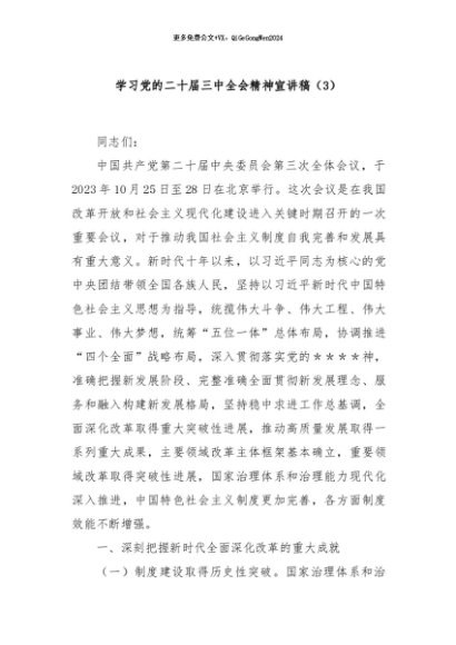 / 【七哥公文】2024年:学习党的二十届三中全会精神宣讲稿(3)+更多免费公文+VX:QiGeGongWen2024