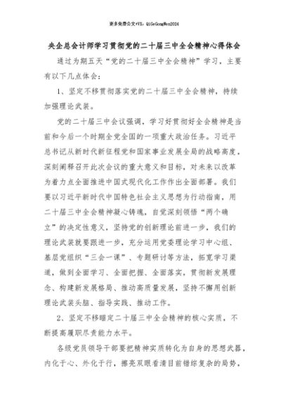 【七哥公文】2024年:央企总会计师学习贯彻党的二十届三中全会精神心得体会+更多免费公文+VX:QiGeGongWen2024