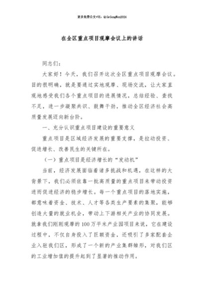 / 【七哥公文】2024年:在全区重点项目观摩会议上的讲话+更多免费公文+VX:QiGeGongWen2024