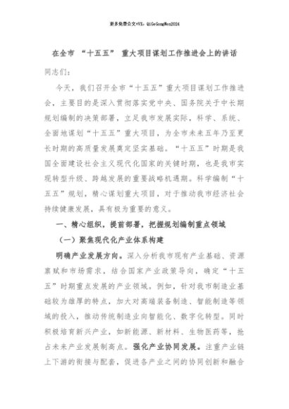 【七哥公文】2024年:在全市 “十五五” 重大项目谋划工作推进会上的讲话+更多免费公文+VX:QiGeGongWen2024