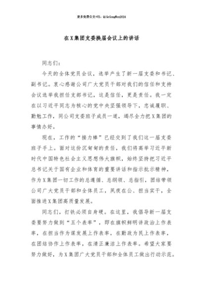 / 【七哥公文】2024年:在X集团支委换届会议上的讲话+更多免费公文+VX:QiGeGongWen2024