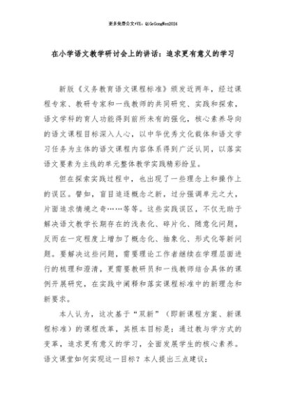 / 【七哥公文】2024年:在小学语文教学研讨会上的讲话:追求更有意义的学习+更多免费公文+VX:QiGeGongWen2024
