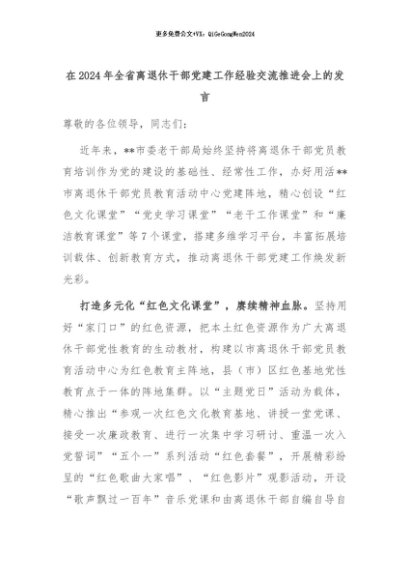 【七哥公文】2024年:在2024年全省离退休干部党建工作经验交流推进会上的发言+更多免费公文+VX:QiGeGongWen2024