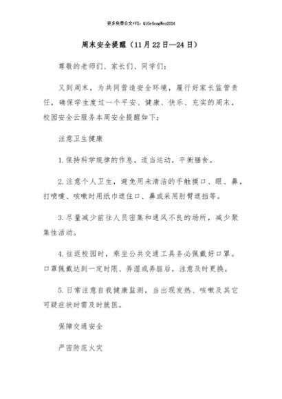/ 【七哥公文】2024年:周末安全提醒(11月22日—24日)+更多免费公文+VX:QiGeGongWen2024